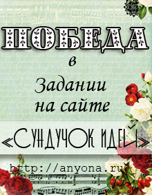 Привет - привет!!! Поздравляю всех с началом лета!!! А я сегодня узнала что выиграла приз в задании на сайте Сундучок идей! Принимала участие моя работа - детский альбом!! Радости и восторгу нет предела! С нетерпением буду ждать свой приз!! А это приз от дизайнера Евгении Курдибановской!